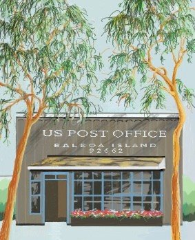 Parts of the interior and exterior were built from recycled materials from old, dismantled mid-western post offices. Beloved Island resident, Hal Will Smith, whose real estate office stood across the street, was responsible for donating the wood planks that created the western motif. Mr. Smith also planted the original eucalyptus trees that lined Marine Avenue. For all your mailing needs, visit our Post Office at 206 Marine Avenue, Monday through Friday, 9 AM to 4 PM.